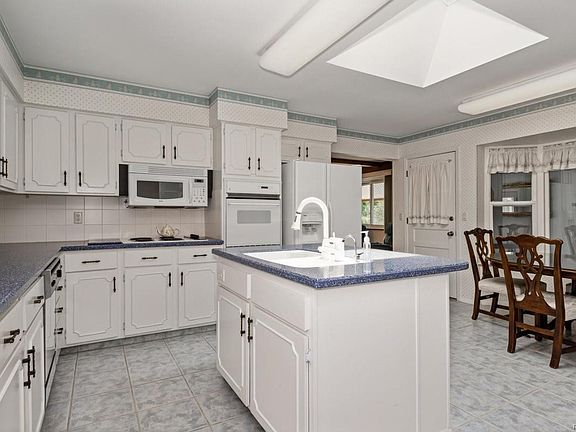 This well-kept ranch home sits on a quiet street and provides 3,868 total square feet, including 4 beds, 3 baths, an open, unfinished basement. The unique one-level floorplan provides excellent flow and great sight lines from one living space to another. The interior is light and bright, w/an open entry and formal living room, open formal dining room, open kitchen with eat-in space, and open family room w/beamed ceiling and stone fireplace. A spacious, enclosed patio room is perfect for a second family room, recreation room, office, playroom, or work-out space. The convenient laundry room with outside access and a ?? bath are easily accessible from the family room, backyard, and garage. At the other end of the home, a master bedroom suite features double closets and a private bath with separate shower and toilet. Three secondary bedrooms share a full bath with double sinks and original oak floors are highlighted. You will enjoy relaxing or entertaining in the flat back yd. SOLD AS IS.