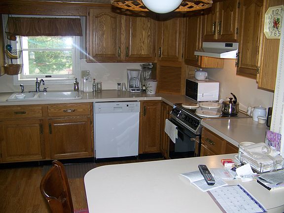 You are home. Lovely home that has had many updates throughout the years. Updated kitchen with beautiful oak cabinets and skylight. Updated lighting in dining and foyer. Gas fireplace in living room, wood stove in family room, all situated on a 1.38 acre lot. One year home warranty included.
