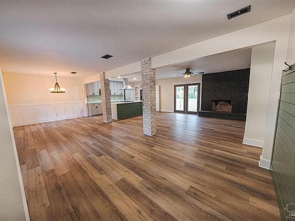 Immaculately remodeled 3/2, 1637 SF, all-brick, open-concept, PACE home w/NEW ROOF, NEW WINDOWS, all new kitchen, w/quartz counters, and stainless appliances, fully remodeled baths (Primary ensuite bath has walk-in glass shower!), flooring, paint, updated plumbing/electrical, HVAC, ETC on a corner lot that is EIGHT-tenths of an acre! Youll notice, from the moment you walk into the entry foyer, that this beautiful open-concept home is move-in ready! To the LEFT of the foyer is the Dining Room, featuring 2 fabulous exposed-brick pillars, which flows in perfect harmony into the Kitchen and Living area. The Kitchen is a chefs dream with its upgraded Quartz counters, oodles of soft-close cabinets for all your storage needs, smooth-top electric stove, gargantuous island/breakfast bar, brand-new fridge, microwave, and dishwasher. The Living Room features double French doors onto the pergola-covered back porch, leading into the backyard paradise, creating an entertainment lovers dream and the perfect spot for a summer BBQ or fall/holiday get-togethers with family and friends. The main suite, which features a ceiling fan, closet, a window overlooking the backyard and an en-suite bath that features double Quartz vanities, and a miraculous class-enclosed shower- Imagine closing the door to the rest of your life, pouring yourself a glass of wine, and letting the rest of the world melt away in your very own suite! The two additional bedrooms are complete with ceiling fans, vinyl flooring (no carpet anywhere!) and accompanied by a full bath with a tile bath surround and Quartz counters. Extras include all-brick construction (freshly painted), completely remodeled with YOU in mind, a two-car garage with plenty of room, covered front porch, pergola covered