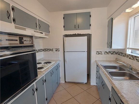This 2 bedroom 1 bath home is located walking distance to Old Town Yucca Valley. This super cute property has a fully fenced yard and a detached 1.5 car garage. Upon entry you will notice the tile flooring and vaulted ceiling in the living room. The kitchen comes with a double sink, refrigerator, electric cooktop and built-in oven. ceiling fans throughout. The hallway is well equipped with an abundance of storage space on both sides. Both bedrooms have brand new carpet. French doors off the living space will lead you to the large covered patio in the spacious backyard.