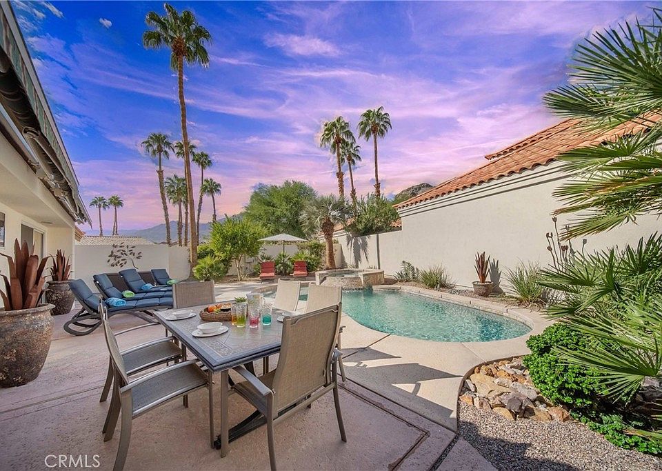 This spacious home boasts 3 well-appointed bedrooms, each thoughtfully designed to provide an oasis of relaxation and tranquility. Indulge in the 3.5 luxurious bathrooms featuring high-end fixtures and finishes, offering a spa-like experience in the comfort of your own home. The state-of-the-art kitchen is a culinary enthusiast's dream, equipped with top-of-the-line appliances, custom cabinetry, and an expansive center island, perfect for preparing delectable meals and hosting memorable gatherings. Embrace the seamless flow of the open living spaces, creating an inviting atmosphere for entertaining guests or spending quality time with family. Step outside to your own private paradise - a stunning backyard retreat featuring a shimmering pool, a rejuvenating spa, and an elegant patio area, where you can relish in the warmth of the California sun and enjoy picturesque views of the surrounding mountains.The lavish master suite offers a peaceful sanctuary, complete with a lavish en-suite bathroom, a generous walk-in closet, and direct access to the outdoor oasis.