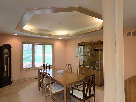 Welcome home to this Frank Lloyd Wright inspired custom built home on large private lot. Features: beautiful landscaping, Pella windows & doors, 1st Flr Master, natural woodwork throughout, open floorplan, lots of natural light, tray ceiling, workshop in LL, rough-ins in unfinishd bsmt, central vacuum system, +many more! See 3D tour link attached