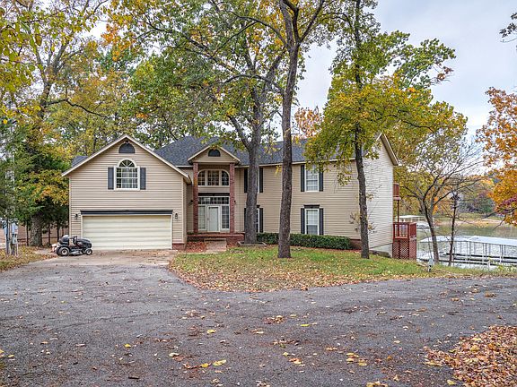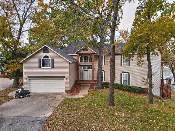 FABULOUS MAIN LAKE VIEW. Huge Open plan, 2 bedrooms and 2 baths down. Covered 2 slip dock is protected, 233 ft of frontage approx. 2 bedrooms and huge game room(or 5th bedroom) upstairs. Tons of storage, built-in desk in kitchen, easy gentle walk to dock, roof replaced 1 yr old, new laminate wood look flooring, wide staircase, Stainless appliances, NO HOA. Close to airport and Golfing.