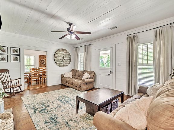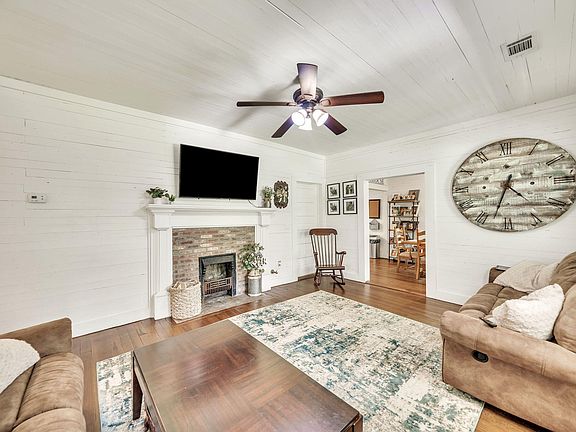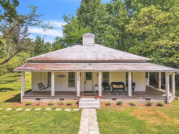 Looking for a truly one-of-a-kind home with unique character you won't find anywhere else, then this is for you! This property was built in 1925, with features you will not see in modern homes, and then lovingly updated with true attention and care to keep the vintage charm. Hard to find unrestricted 1.5 acres of gentle land upon which the home sits has a year-round flowing creek, an original barn, stone stacked walls, and many native plants. This home welcomes you inside from the covered front porch where you will be greeted by heart-of-pine floors, high ceilings, and the original shiplap walls. The living room offers an original decorative brick fireplace and flows to the bright dining room with a great built-in corner cabinet not to be missed. The kitchen was lovingly updated with shaker white cabinets, granite counters, and tiled floors to match the rest of the original wood flooring. The primary bedroom offers a 2nd original decorative fireplace, a private full bath, and a walk-in closet with the laundry. Both the secondary bedrooms and full bath are good sized. A few of the features you will find in this one-of-a-kind home are the vintage doors and hardware, the original walls and ceilings, the charming fireplaces, heart-of-pine floors, almost all of the original windows with the rope pulls, the pressed tin roof, and Tate Marble steps and walkway!