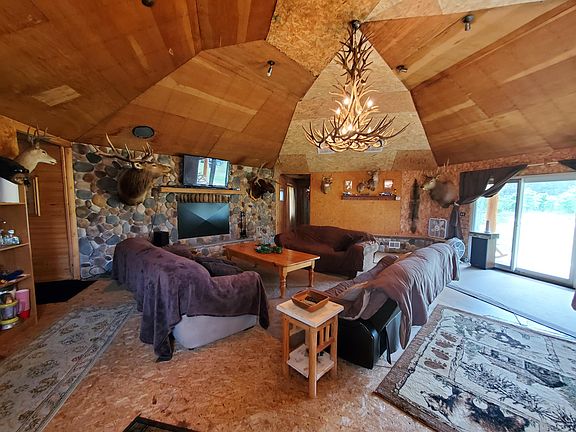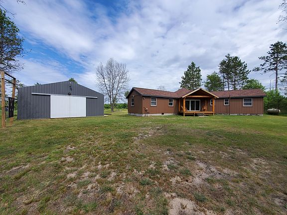 Uniquely constructed 5 bedroom 2 bath home features pole building, updated roof , high efficiency furnace, and wood burning fireplace with stone surround, home will need finishing. This is a Recreational location in southern Oscoda County ,less then 1/2 mile from the Oqemaw County line, Direct access to miles of federal forest (across the road), orv & snowmobile trails. comes furnished including most personal property present...dirt bike track on property..