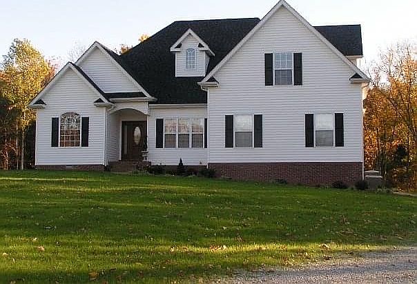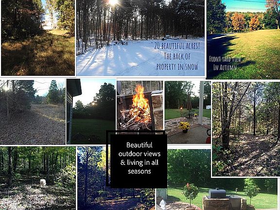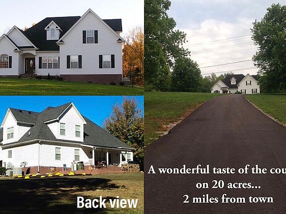 Beautiful 2500+ square foot home with 2 car garage on 20 acres. Property consists of three spacious bedrooms, large bonus room (could be 4th bedroom), open floor plan with vaulted great room, formal dining room, office, breakfast area, large kitchen, 2.5 baths. Large backyard with covered porch, natural stone patio, custom stone grill/smoker & fire pit, partially in-ground salt water pool with deck area, black top driveway, beautiful private lot & 20 acres of woods. Very private country setting, just two miles from town.