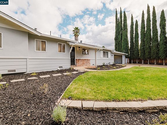 Beautiful and complete remodel to this craftsman style home. All New upgrades include front and back landscaping, roof, interior/exterior paint, kitchen w/stainless steel appliances, bathrooms, floors, doors, baseboards, mirrored closet doors, recessed lights, ceiling fans, window coverings, decor switches and outlets, new hardware throughout. New HVAC. Dual pane windows. Upgraded areas also include garage, electrical and plumbing. Large backyard with fruit trees, grape vines, tool shed. Possible pool site or ADU. Perfect for entertaining. Proximity to great K-12 schools, great shopping, access to Mt. Diablo and trails an added bonus. Over 1/4 acre lot. Home shows a 10 out of 10.