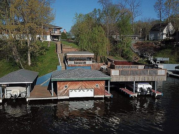 A MUST SEE! Year round home with panoramic views of Lake Freeman from living room, eat in kitchen, master bedroom and walkout basement. Over 150' watercfrontage along with 4 boat lifts, a large lake level deck great for entertaining, a tiki hut for relaxing, a patio for barbecuing and a breezeway for rainy day entertaining or relaxing. This home has 2- 3 bedrooms, 2 full baths ( one up and one down), a large 3/4 lot and a 3 car finished garage. This home has natural gas heating, central air and a full house generator.