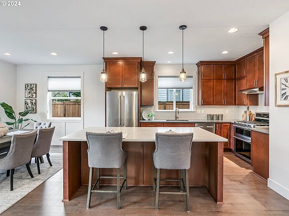 - Features: Eat Bar, Island, High Ceilings, Wood Floors