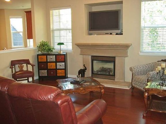 Open Sat 1/23, 12-2. ALL OFFERS CONSIDERED! Big Screen TV incl! $8000 or $6500 tax credit for qualified buyers! BRAND NEW Brazilian cherry hardwd flrs thru-out! Upscale slate entry. NEW, ex-lg, central A/C. Kit w/ sunny nook, cherry cabs, SS appl, lg Pantry,. Dramatic, vaulted Liv Rm w/ fplc & blt-in TV alcove. 2 balconies from Dng Rm & Brms. Huge storage over 2 car garage!