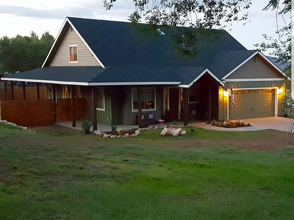 GORGEOUS 4 bedroom, 2.5 bath home situated on a private corner lot! So much thought went in to the building of this home featuring soaring ceilings, beautiful stamped concrete flooring throughout the main level with a stone accented fireplace to finish off. The granite countertops are consistent throughout the home as well as the knotty alder cabinetry. You will feel pampered in the spacious master shower with dual heads and level entry. Got clothes?! We've got you covered with ample storage space not only in the master closet, but throughout the home. The wrap around covered porch is a wonderful addition to the xeriscaped backyard that features Forever Lawn, paver pathway to a covered sitting area & if trampolines aren't your thing, simply fill and have a great fire pit area! If you have horses there is still plenty of room on the property. The upstairs area has an additional living space to be utilized however you wish and has the 3 additional bedrooms. Really, this is a TERRIFIC floorplan that you must see! Schedule your showing today!