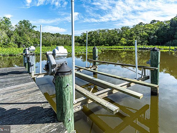 Just in time for summer... this 2930 SF, 4 bedroom, 2.5 bath CREEKFRONT residence with DOCK, BOAT LIFT and 18 x 36 HEATED IN-GROUND POOL is the perfect place to enjoy the warm months ahead! The home's 1st floor is open with spacious rooms that include a 19 x 27 great room w/ masonry wood-burning fireplace, built-in bookcases and creek/pool views, dining room (or office), updated eat-in kitchen w/ stainless appliances, quartz countertops and creek/pool views, laundry room w/ pocket door entry, washer, dryer and closet, a half bath, and a window-filled sun room overlooking the pool and creek. The 2nd floor offers a spacious primary bedroom w/ private bathroom, walk-in closet and access to a walk-in floored attic, 3 additional bedrooms (one w/ access to a walk-up floored attic) and a hall bathroom w/ separate tub/shower/toilet area. Other features include a paved driveway leading to the 3-car attached garage, shed w/ electric, poolside bathroom, vinyl privacy fence, brick BBQ, in-ground irrigation, landscape up-lighting, and a one-year AHS 'Shield Essential' warranty. Community amenities include a boat ramp (tide regulated), playground, and tennis/pickleball court.