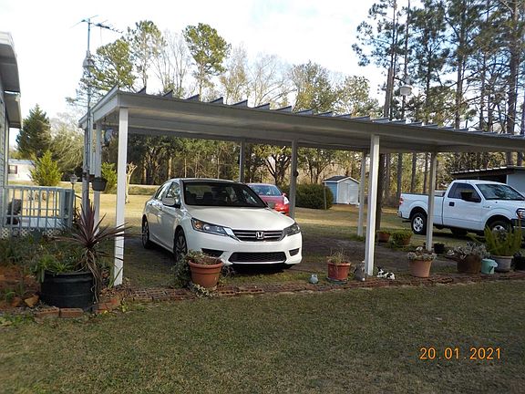 Wonderful mini-farm! Producing lemon tree (huge lemons!) and scuppernongs-red and white, Chicken coup 2 carports to handle your vehicles, boats, tractors etc. Large screen porch on front of house, open living / kitchen with reclaimed pine flooring. Laundry room off kitchen and tub/shower unit bathroom with vanity cabinet. Bedroom has 2 closets and addition has an 10 x 38 den with reclaimed pine flooring plus 10 x 12 bedroom with carpet. Out the back door is the 'cook shack' and wired shop. Deep woods behind house makes this a good area for woldlife - deer in the back yard is common. Private well. Utilities with GA Power usually under $100. Call for your opportunity today!