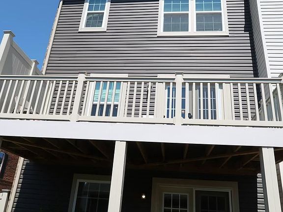 Beautiful up-kept brick front and side END-UNIT TOWNHOME Only 3 years old! Featuring three completed levels and a detached two-car garage and two assigned driveway spaces. Entry level hardwood floors with powder room, office/den with french doors and recreational room, additional storage and walk-out to a fenced in backyard. The middle level offers an open concept with beautiful dark brown hardwood floors, powder room, gourmet eat-in kitchen with island, granite countertops and stainless steel appliances and a beautiful spacious deck leading off the kitchen to complete your entertainment needs. The upper level features three beautiful bedrooms, full hall bath and UPPER LEVEL LAUNDRY. Master bedroom features owners bath, large walk-in closet and tray ceilings.
