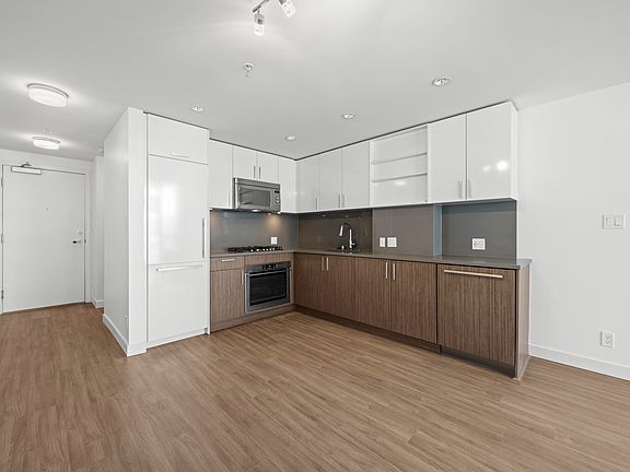 Welcome home to The Grand. This immaculate 1 bed 1 bath AIR-CONDITIONED home offers a thoughtfully designed, functional layout in a prime central location. Featuring an open-concept living and dining area, it maximizes space while creating a bright and inviting atmosphere. Modern kitchen is equipped with sleek cabinetry, gas stovetop, thick quartz countertops, quality appliances, and ample storage, while the spacious bedroom provides a peaceful retreat with generous closet space. Situated just steps away from Lansdowne Mall, T&T supermarket, dining, shopping, and public transit, this move-in-ready home is perfect for those seeking convenience, style, and urban living at its finest.