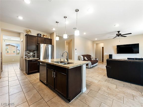 Upstairs, you'll find a full guest bath, a laundry room with a sink, and four bedrooms. The primary suite boasts dual sinks, dual walk-in closets, and a walk-in shower. The backyard offers breathtaking mountain views, a block surround wall, and no rear neighbors, ensuring a gorgeous view of Mt. Charleston.