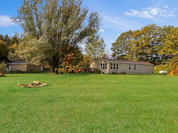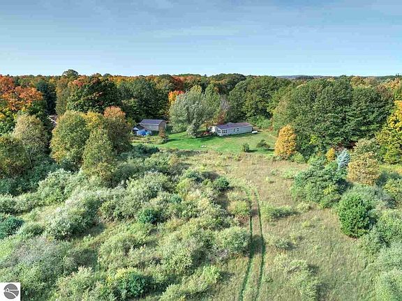 Enjoy this affordable 3B/2B 1500+ sq. ft. home located on 10 wooded acres just 5 minutes from Bear Creek. Relax in the cozy living room with floor to ceiling windows viewing out to the spacious backyard. The deck which overlooks the backyard is the perfect place to start your morning or end your day. New steel roof was installed on the home in 2017. There is plenty of room for your toys with a 28x32 insulated outbuilding featuring electric, heat and water. The outbuilding has a 10x28 lean to shed and there is also a 12x16 garden shed. The property features underground pet fencing and an outdoor kennel. Bear Creek is the best kept secret in the north! This fast flowing, National & Scenic river is the major spawning tributary to the Manistee River system providing most of the wild runs of steelhead and salmon for this region as well as some of the earliest steelhead catches in spring and fall. Brookies, Rainbow and Browns also like to call this river home. Located near the snowmobile trails, Manistee National Forest, Tippy Dam and only 25 minutes from Crystal Mountain or Manistee.