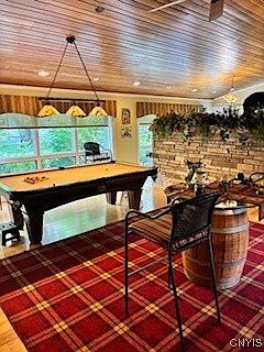 Do you love to entertain or just want a space for large family gatherings? If so, this house is definitely for you with over 4000 sq ft of living and entertaining space. The "basement" is a wonderful warm cozy family room with wood burning fireplace. The Gathering room addition is perfect for all your needs with a spectacular gas fireplace, beautiful wood plank vaulted ceilings, a wet bar with high end cherry cabinets and granite countertop. Not to mention the pool table - that stays! Next up is a gorgeous Theatre Room - yes you heard that right. Nothing was spared here from the remote room darkening blinds, Projector, sound system, recliners, and side tables! This all conveys. Getting excited - you should. There is central A/C that keeps you cool in the summer, and the heated floors will help keep you warm in the winter. Top quality, Buderus boiler, updated electrical, plumbing, whole house generator, metal roof (2016), updated vinyl windows, newly painted vinyl shake siding. Main level laundry with new washer/dryer (2023). New updated Kitchen with new Stainless-Steel appliances, updated second floor bathroom with new vanity and new Shower/Tub enclosure. Updated closets in every room. *Hot Tub!**40K in new blacktop (2020) is in still perfect condition. Concrete Septic (pumped Spring2022). Drilled well has never run dry. New fenced in yard to keep your pets and/or children where you can see them. Security System included. Additionally, an insulated 2200 sf Pole Barn with 4 overhead doors, 220v hookup, fits RV. What more could you possibly want?