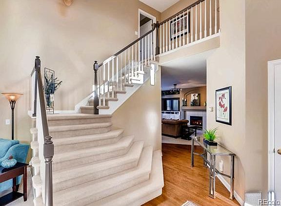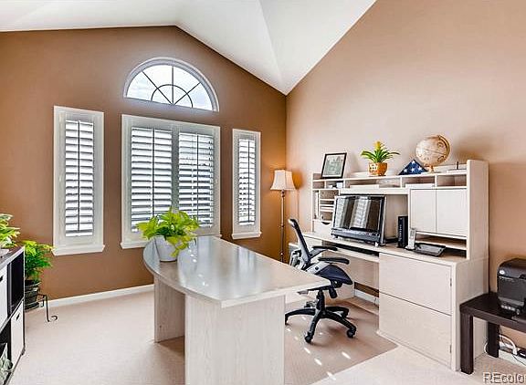 This lovely home is a must see with soaring ceilings and an open, flowing floor plan. Pretty landscaping with roses, perennials, mature trees, water feature, and a large paved patio. Views of the city, mountains, and CO sunsets are special. Updates include: energy efficient windows, newer 50 year roof, plantation shutters, new blinds, designer paint colors, updated light, and bath fixtures, newer shower surround and carpet, tiled bath and laundry room floors. You won't believe the garage space. It's dry walled, insulated, has canned and work lights, wall speakers, shelving, three large windows bringing in natural light and a stainless steel counter top. The location of this home is superb! Cherry Creek schools. There is easy access to I25, I225, E470, and light rail, DTC, walk and biking trails, CC Reservoir, dog park, horseback riding, and skate park. The Piney Creek HOA boasts many amenities including tennis and swimming, playground, picnic area with grills and a beautiful clubhouse.
