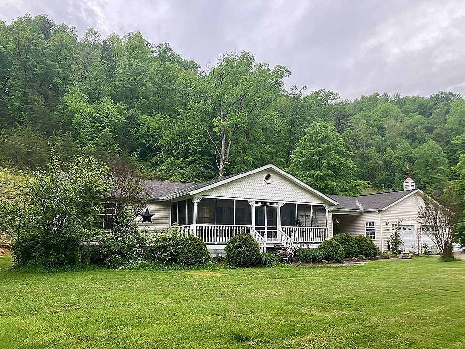A beautiful, well built manufactured home located conveniently to Paintsville in Johnson County KY. This home was special ordered when built and has 2x6 walls, 3/12 roof pitch and drywall, and a block foundation. Many other added features include a large screened in front porch, a breezeway separating the oversized 2 car garage and an additional storage room. Hand laid stone sidewalk, extra parking, mature landscaping, unique and charming architectural additions to the home include an antique fireplace mantle, custom bathroom vanity, tiled countertops, screened in porch with herringbone patterned decking, and lighting fixtures replaced almost all throughout the home. Custom closet system in the primary bedroom closet.