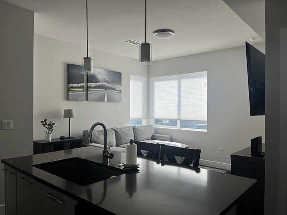 Discover contemporary living in this stylish 2020 townhome located in the heart of Lakewood, Colorado. This community, West Line Village, is a short distance from Denver's favorite park, Sloan's Lake and all the new happenings on West Colfax! 4 Light Rail stops to Auraria, 7 stops to Union Station and 30 steps to Lakewood Gulch Trail. Our end unit provides both views of the Rockies and the city of Denver. This fully furnished townhouse includes everything you need to feel right at home. Upon entering, you will be greeted by a sleek and modern kitchen. The kitchen is equipped with a gas stove, stainless steel appliances, and Euro-style cabinets. Enjoy an eat in experience at the oversized island. The kitchen opens up to the living room, where you will find a 65" smart TV to watch all of your favorites. On this level, you will also have a half bathroom and a spacious coat closet. Upstairs you will find the luxurious master suite. The bedroom has oversized windows offering mountain views with amazing sunsets. In the walk in closet, there is plenty of room for activities..including laundry! The washer and dryer is conveniently located in the closet making your life that much easier. A modern barn door connects you to the bathroom, offering a large walk in shower, double vanity, ample storage, and a separate toilet room. There is also a one car garage, large enough for a mid size SUV. Pet friendly upon approval Utilities included Fully Furnished Available starting 10/14/2024 *desk & chair can be included upstairs upon request Lease term flexible 3m-1yr