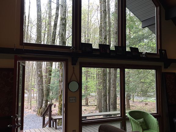 A charming, warm Mountain Chalet on a beautifully wooded half acre lot. Mature hemlocks and colorful maples surround this completely renovated home. Offers year round Lake Community AMENITIES with this 3 bedroom, beautifully updated bathroom, custom BROCH kitchen with stainless steel appliances and solid wood cabinetry. Living Room/Dining Room with Vaulted Ceilings. Charming Wood Beam Ceilings & Ceiling fans keep the chalet cool in summer months. New roof, two skylight windows to bring in natural light, Pella windows throughout, new exterior insulated doors, new roof with insulation installed by a quality roofer, FHI. Updated basement exterior door, vinyl siding and down spouts replaced. New hot water heater, electric baseboards/replacement thermostats throughout. Solid concrete floor in crawl space providing storage along with an electric heater with thermostat and installed fan. Original, beautifully constructed stone fireplace w/ propane insert/remote. Original, natural pine floors throughout and carpeting. Exceptional quality in decorating with the most appropriately placed furniture to enhance the beauty and peacefulness of the home’s setting. Fully furnished … move in ready. Included in this sale is a 4 person, 1969 Lone Star refurbished boat with 2.5 horsepower electric motor and trailer. The main beach, Clubhouse Beach & Marina, is within walking and/or bicycle distance from this mountain retreat. Minutes from Kalahari Resort Poconos, Big Boulder Ski Area, Jack Frost Ski Resort, Camelback Ski Mountain/Water Park Resort and Mount Airy Casino Resort. This beautiful, peaceful, Lake Naomi chalet is waiting for you. Contact owner at 610-360-8146 or email ellen8gk@gmail.com