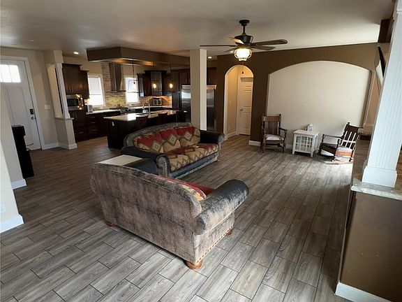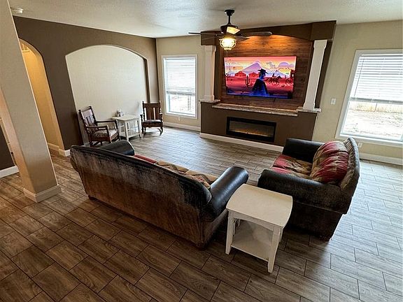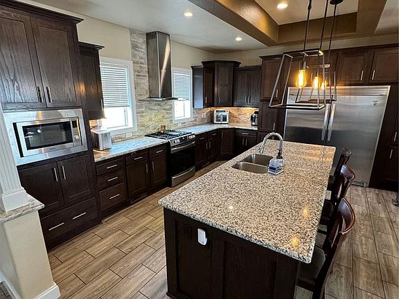Huge country kitchen highlights this home located on a quiet cul de sac with space between you and your neighbors. Built in 2020, so all improvements are relatively new. Open floor plan with large living room and gorgeous fireplace. Large island, pantry and many niches. Three bedrooms, two full baths and rough in plumbing in full basement. Over 4000 sq ft total. Dont miss the awesome built in safe/room with concrete wall and ceiling and steel door. Exterior is fenced for your large animals that have room to roam on the included 40 acres. Steel corrals may be negotiable. Call for private showing
