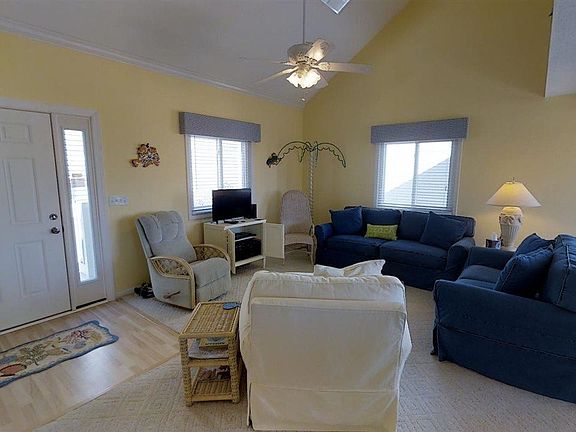 Nestled in a charming enclave, this home is only a block from the beach! It has only been used as a second home so you dont have the wear and tear of a rental. As soon as you walk in, you will be impressed by the open concept floor plan. The spacious great room, kitchen and dining area offer the perfect place for entertaining. Conveniently located, the master bedroom is on the main level. 2 guest bedrooms and bath are upstairs. There are two decks for sunning and unlike its neighbors with under-house parking, the open area beneath this home provides abundant space for outdoor living away from the sun. With a porch swing, picnic table, and plenty of room for hammocks and other furnishings, you have even more possibilities to enjoy the coastal lifestyle. This home comes fully furnished so all you need to do is pack your bags. Be sure to check out the immersive 3D virtual tour for a real life walk through of this perfect beach getaway!