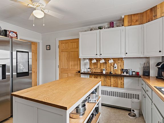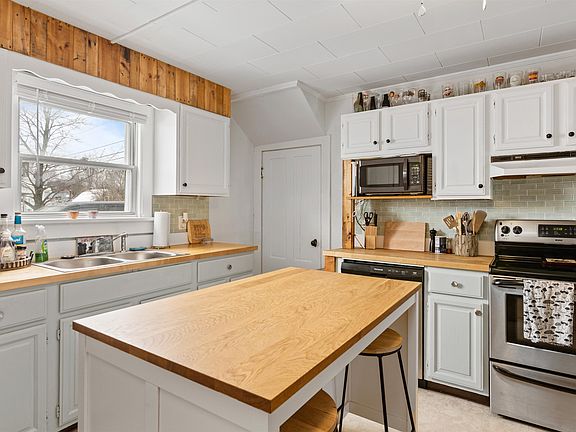 You'll love this charming historic colonial conveniently located in Swanton Village! This delightful home offers a blend of timeless elegance & modern comfort. Boasting 3 bedrooms & 2 baths, this meticulously maintained property showcases numerous quality updates throughout. As you step inside, be greeted by the warmth of pristine hardwood floors & exquisite custom crown molding that adorn the interior. The heart of the home is the updated kitchen, featuring newer appliances that include a touch screen fridge with interior camera, butcher block countertops, & a convenient center island – perfect for culinary enthusiasts & entertaining alike. The first floor also presents a spacious living room, a 3/4 bath for added convenience, a separate dining room ideal for hosting gatherings & a versatile office/study space to suit your lifestyle needs. Venture upstairs to discover 3 cozy bedrooms, a full bath exuding classic charm, & a separate laundry room offering utmost convenience. Whether unwinding after a long day or hosting guests, this home provides ample space & comfort for all. Outside, escape to your own private oasis within the fully fenced backyard, offering both privacy & security. Enjoy serene moments on the beautiful covered & screened front porch, or utilize the covered side entry for added convenience. Plus, with a detached one-car garage, parking & storage are a breeze. Experience the epitome of colonial-style living with modern amenities in this historic gem.