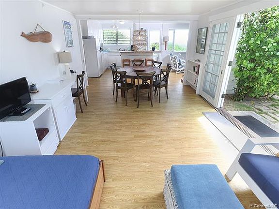 Malaekahana Bay is perhaps the last pristine white sand beach stretching for miles and connecting to Laie Bay offering the ultimate beach walk. A favorite vacation destination for generations of Hawaii's Kamaaina, the relaxed, rural environment and the beautiful sound of the rolling, turquoise, white capped waves can unwind even the biggest knots in stressed out shoulders! Only 40 homes on the Bay, this special location is a trip back into Vintage Hawaii. Never before offered for sale, this Island style, one level four bedroom, two and one half bath home with red brick fire place, French doors opening to a paved lanai and gorgeous mountain views, eat in, open kitchen with breakfast bar facing the ocean, expansive oceanside deck, rolling green lawn for Volleyball, Croquet and Hammock naps, easy access to the beach and the primary bedroom separated from the other bedrooms for maximum privacy all add up to the perfect spot to recharge, rest and relax. Life is unpredictable at best ... Don't let this opportunity to own the quintessential Hawaiian beach house get away from you. This property has a legal Vacation rental Permit and is a busy vacation rental. Showings by Appointment. 2022-07-21