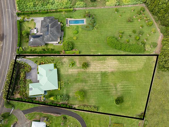 Experience the many layers of island living with this beautifully crafted three-bedroom, two-bath home, set on 1.43 acres in the highly desirable Maliu Ridge subdivision. Designed with thoughtful care, this home features custom finishes throughout, creating a warm and inviting atmosphere. A kiva-inspired fireplace is perfect for cool evenings, and the spacious master suite complete with a jacuzzi tub, ideal for relaxation. An office/media room adds versatility, while the large two-car garage with an attached workshop offers plenty of space for storage and projects.