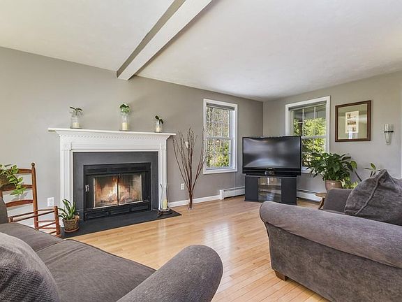 Lovely 3 bed Colonial with 2 car garage on a private lot with a beautiful pond! Gorgeous wrap around porch surrounds this charming home. Front foyer welcomes you into the spacious fire placed living room which is open to the eat in kitchen and dining room. The kitchen features updated appliances, plenty of counter space and an enormous island. Cathedral ceiling master is spacious in size. Other 2 bedrooms and a full bath complete the second floor. Nice back yard offers plenty of space to play, entertain, and relax.