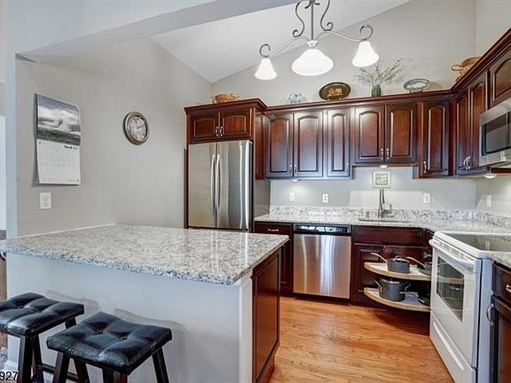 Ask for Alma. Gorgeous and updated Fairfax End Unit at Jackson Village. Largest model on 2nd floor. Open floor plan. Dramatic cathedral ceilings. Updated cherry eat in kitchen with breakfast bar, granite, SS appliances, soft close cabinets and drawers and custom pull out drawers. Private deck of Living Room. Master suite with luxurious bath and walk in closet. Beautifully updated Hallway bath. Replaced furnace and AC coil, HWH and washer dryer. Large basement storage room with cedar closet. Garage. 326-acre well-maintained grounds bordering over 100 acres of undisturbed nature. Convenient to Rt. 78 and shopping. On-site property manager, clubhouse, playground, bocce court, bicycle paths, tennis court and in-ground pool. No dogs are allowed in the complex. Excellent schools, elementary school: Cedar Hill