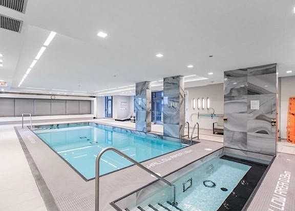 Modern And Prestigious Lago At The Waterfront On Lakeshore. Stunning Lake View. Bright And Open Corner Unit With 2 Bedrooms And 2 Full Bathrooms. Several Walk Outs To Huge 300 Sq Ft Wrap Around Balcony. 9 Ft Ceilings, Pot Lights, Each Room With Premium Automated Roller Shades. Pot Lights. Close To All Public Transit Amenities. Lakeshore And Gardiner Expwy. Martin Goodman Bike And Recreational Trail. Parking And Locker Included.