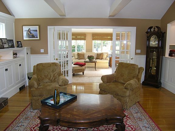 NORWELL This stately Colonial will captivate you with its warmth and charm. You will immediately fall in love with the Chef's Kitchen featuring custom cabinetry, an extra large pantry, baking table, & all high-end appliances. The family room with custom built-ins & fireplace flows into the over-sized four season sunroom. The backyard is set up for all your summertime gatherings with a lagoon-style pool and professional landscaping - A GARDENER'S PARADISE! The luxurious master suite has a spa-like bath for relaxing. Three additional bedrooms and an extra bath complete the second level. The lower level features a family space, wrapping station, & an over-sized office. $919,000.