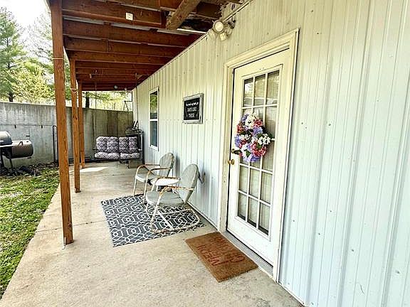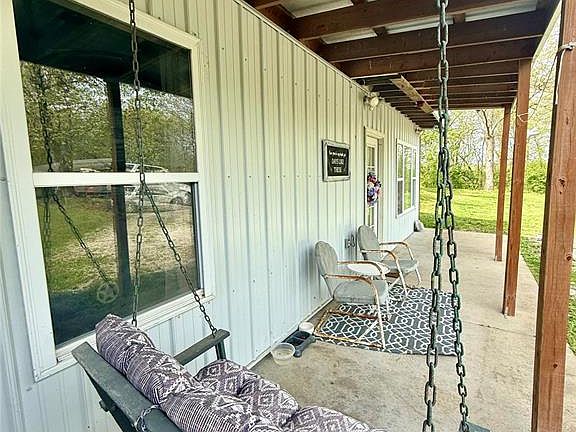Rural home on 9.9 +/- acres! A nice mixed of open and wooded land ready for you. Perfect for horses, cattle, other livestock. Four-wheeler trails winding back to the back of the property, wet creek, great hunting with lots of wildlife roaming through the area. 3 bedroom, 1 bath earth contact home. Metal roof & siding installed in 2019, as well as new bathtub, toilet. Galley kitchen with new countertops installed. All kitchen appliances convey, separate front dining room. Large, open living room with freshly painted ceilings throughout as well as kitchen. Wood stove for heat, with window unit for combo heat & cooling. Very efficient on utilities. Large covered front porch, private and rural location. 24x24 detached garage, newer garage door has been installed. Private well & septic. Come see!