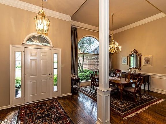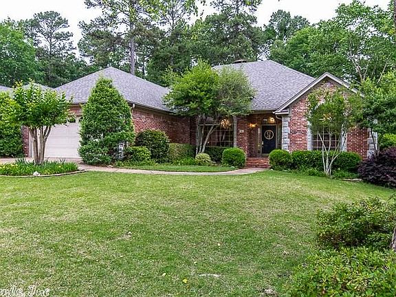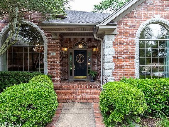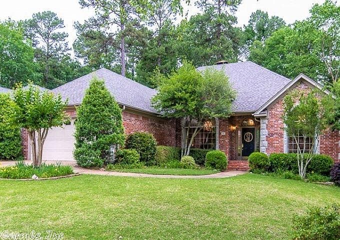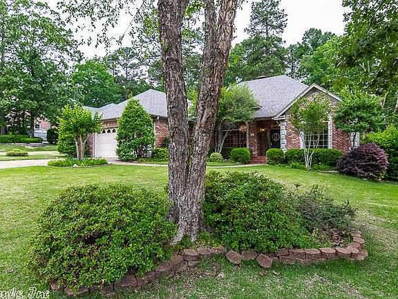 Beautiful home for empty nesters or small family has 3 BRs+office! 1 level brick w stone quoins, 12 foot & vaulted ceilings, open floor plan w split BRs, huge arched windows offering views of gorgeous landscaped lot, pretty fireplace w built-ins around, updated eat-in kit. w new granite, tons of storage, breakfast bar, desk. Master suite has sitting area, walk-in closet, twin vanity w make-up desk, jetted tub, separate shower, separate water closet. Office w built-in bookshelves & vaulted ceiling or 4th BR.