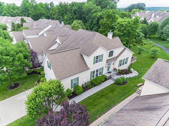 Beautiful sun lit, end unit Davenport model, carriage home, located on a premium lot in upscale gated community of Traditions at Washington Crossing, a 55+ community. A spacious composite deck above and paver patio below, look out to walking trail and trees. Home is beautifully appointed with hardwood floors throughout first and second floor. On the spacious main floor, you will find the kitchen with granite countertops, upgraded cabinets and tile floors. The living room, complete with gas fireplace and vaulted ceiling, opens up to the beautiful deck. The master bedroom, also with vaulted ceiling has a master bath with double vanity, tub plus shower. Completing the main floor is a formal dining room, butler's pantry, laundry room, powder room, and direct access to two car garage. Upstairs is a private guest suite, with full bath and spacious loft to kick back and relax. The walk-out, finished basement adds additional family living space and another guest bedroom and full bathroom. The home is located in a resort-like community with a full clubhouse complex which includes two pools, exercise and weight rooms, a grand ballroom, billiards room, library, tennis, bocce and so much more. Traditions is conveniently located near I-95 and minutes from New Jersey, Philadelphia and a bit longer ride into New York City. This community is one of the nicest in the area and pride of ownership is evidenced in its well-kept grounds.