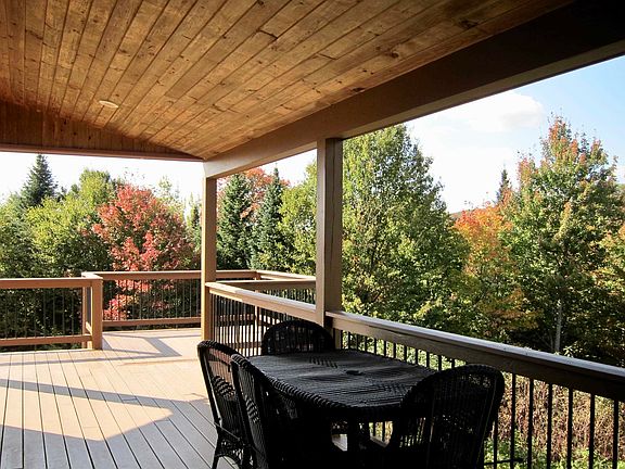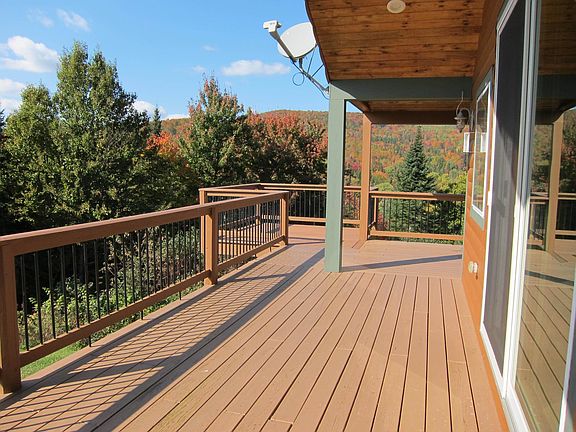 56 Blueberry Hill---offering an extensive deck with a view of the mountains, ALL situated on 3 private acres. The open concept living area has a newly redone kitchen with granite countertops, a gas stove & updated appliances along with a beautifully finished live edge wood top on the island. THE living room sliders allow a view, sunlight and direct access to the deck. The corner of the deck is perfect for a propane fire pit. 1 bedroom is on the 1st floor and another in the loft. ALL heated via FHA/propane, thermostat can be managed remotely... there is a newly finished full bath in basement with stackable laundry and another open/finished space to be used as you need~extra sleeping space or a place to gather family/friends~the large sliders allow lots of natural light and access to the back yard... Storage space is in the garage under. The interior of this home is mostly tongue & groove in basement and open areas. IF you're looking to snowmobile, bike, hike or do some ATVing....this is the perfect spot requiring no trailering... This property is close to what Pittsburg offers~~~