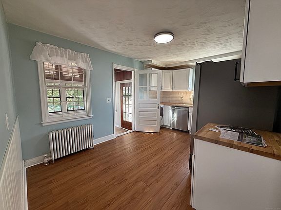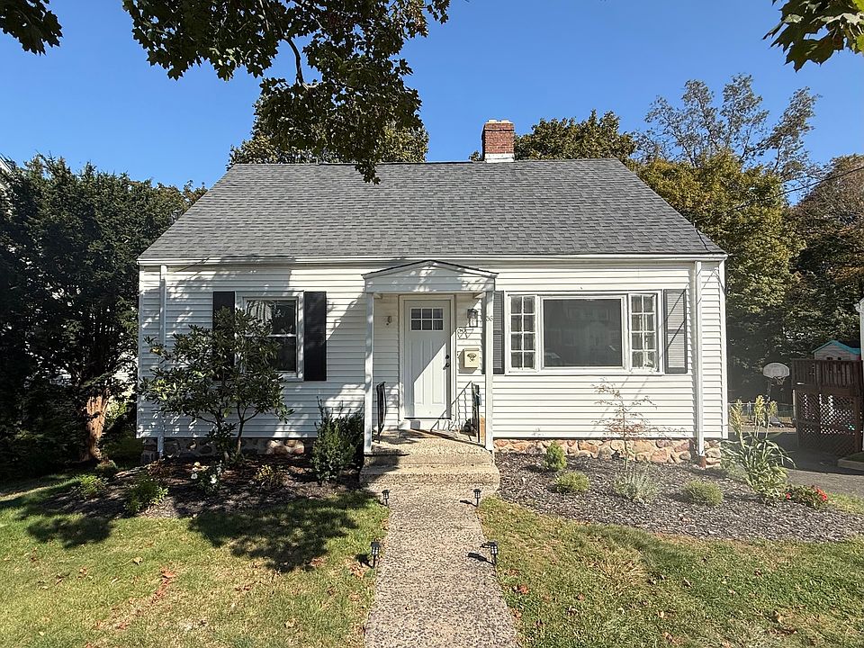 Nestled in a peaceful neighborhood in Plainville, CT, 56 Bohemia St offers a charming 4 BEDROOM Cape Cod home with approximately 1600 sq ft of living space and convenient access to local shops. Situated within easy commuting distance to Hartford and Waterbury, this adorable residence features 4 bedrooms, with 2 on the main level, and 1.5 baths. The updated kitchen includes newer cabinets, butcher block counters, a newer dishwasher, refrigerator, sink and newer flooring. The freshly painted interior creates a welcoming atmosphere complemented by the refinished hardwood flooring throughout the home. Off the kitchen is an east facing three season porch with a beautiful wood clad ceiling ~ perfect for morning coffee! The porch overlooks a spacious flat backyard, great for outdoor activities and relaxation. Off-street parking includes a garage with a new garage door, while a newer roof adds to the home's appeal. Cozy up in the family room with a wood-burning fireplace, providing ambiance during colder months. Upstairs are two additional nicely sized bedrooms and a half bath. Don't miss the opportunity to make this cozy Cape your new home sweet home.