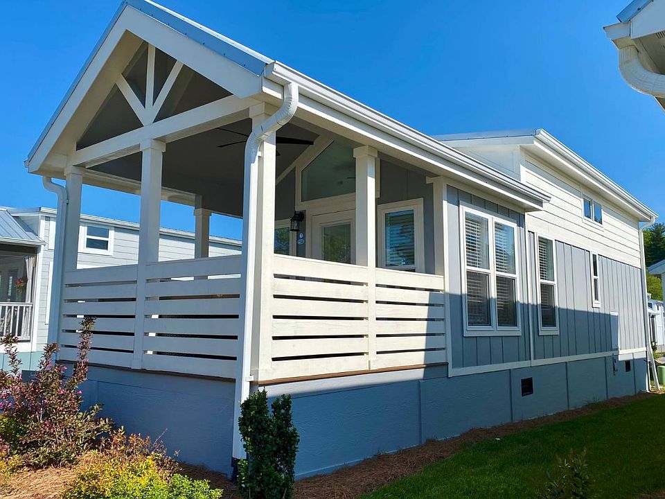 For those in search of a home with ample space and flexible living areas, 56 Breezy Meadow Lane in Flat Rock, NC, is a fantastic choice. This Red Maple layout includes one bedroom, one bathroom, and a loft space, all within just 399 square feet. Upon arrival, you step into the outdoor covered front porch, perfect for entertaining or relaxing. Inside, the living space feels bright and spacious with windows on every wall and high vaulted ceilings. The kitchen offers plenty of counter space, cabinets, a stainless-steel farmhouse sink, and efficient appliances. Moving to the back of the home, you'll find the bedroom, bathroom, side-by-side refrigerator, washer/dryer space, and staircase to the loft. The loft provides extra storage or a flexible space for guests. The bedroom features built-in storage, and the bathroom includes ample cabinet space, a large shower, and a vanity. For those looking for a new home in our tiny home communities, this model in Flat Rock, NC, is a must-see!