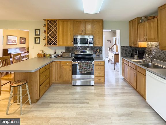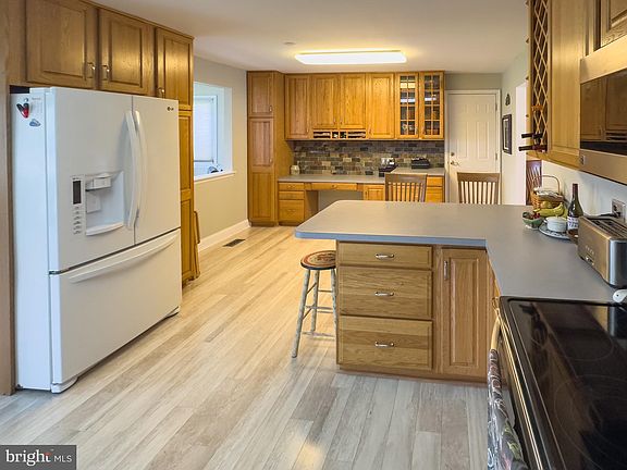 Showings will begin again on Friday, May 3rd with an improved price. Welcome to your dream home! Every once in a while, a home comes on the market that exceeds expectations in every aspect from its pristine condition to its sought-after location and irresistible price. If you have been searching for the perfect blend of comfort, convenience and value, look no further, this is the home for you. Enjoy the luxury of travertine flooring throughout the first floor living space. Traditonally you would expect to find the living room in this charming home. However prepare to be pleasantly surprised as the sellers have reimagined the space, transforming the living room into an exquisite dining room. Illuminate your gatherings with natural light pouring through the expansive Andersen bay window creating a warm and inviting ambiance. Prepare to fall in love with the kitchen you've always dreamed of! This 22x12 culinary haven is a masterpiece of functionality and style, offering everything you need to elevate your culinary experience. Oodles of kitchen cabinets providing ample storage for all your staples, cookware & utensils. Discover the convenience of an abundance of drawers ensuring easy organization and quick convenience to all your kitchen necessities. Say goodbye to clutter with two generously sized pantries offering plenty of space to stock up on groceries. How awesome to have a dedicated desk space ideal for your laptop, recipes and cookbooks and kitchen gadgets. The stackable washer/dryer are included and access to the furnace and hot water heater can be found here. Bask in the glow of natural light pouring in from the numerous windows enjoyed here in the family room. Enjoy the panoramic views of the rolling, hilly backyard. As you exit through the french door you will step onto the large composite deck with roof and awning. There is also a brick patio where you can soak up the sunshine, relax or entertain. The "as is" garden shed comes in handy for all your garden tools. As we step inside your will find the owners quarters with double mirrored closets and a pocket door will lead you ito the bathroom. Despite its current use as a walk-in closet, there is no denying the potential of this room to serve as it was orginally intended as a second bedroom. However in its current state discover the beauty of custom shelving, pullout drawers and charming cubbies meticulously designed to keep your clothing, shoes, accessories and everyday essentials impeccably organized and easily accessible. Ascend the stairs to discover a private retreat on the upper level of this enchanting home. Here you will find two generously sized bedrooms and a magnificent remodeled bathroom meticuously designed with modern vanity and extra large ceramic tiled shower with a built in bench. Schedule your private tour today