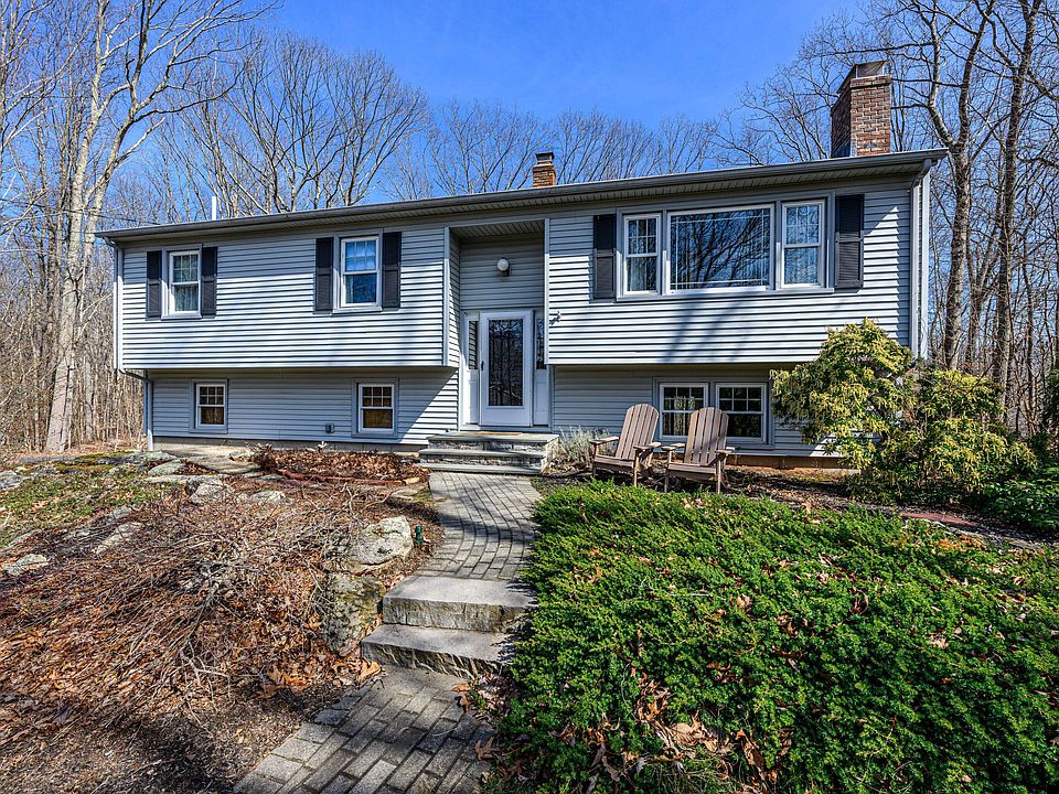 Welcome Home!! Nothing to do but move into this meticulously maintained home! Nestled on a small tree lined Cul De Sac just a stones throw to Boston Post Rd to the south and Guilford HS to the east, and a short car ride to the town beach! This cozy RR has southwest exposure which floods the home with natural light. The home sits atop a little knoll and has great curb appeal! This 3 BR, 1.5 bath home has beautiful hardwood floors throughout the main level, updated kitchen complete with cherry cabinets, crown molding, quartz countertops, and a breakfast bar. The 3 season porch off the dining room is a great sanctuary to sip your morning coffee and observe the beauty of your private back yard. The dining room is also open to the living room, great space for entertaining and to cozy up to one of the two fireplaces the home offers. Three bedrooms and one full bath round off the main level. The large primary bedroom has access to the main level bathroom. The lower level is complete with a huge family room with second fireplace, sliders leading out to the rear yard, half bath, and laundry room. A one car garage and large storage room round off the lower level. Updates include a new roof (2021), updated full bath, new garage door, newer windows, and newer well expansion tank. The house has Central AC and a Weil Mclain furnace and Hot Water Heater. Easy Access to 95, Guilford Train Station, Shopping, and all the shoreline has to offer. House is being sold As Is, inspections are welcome but would be for informational purposes only.
