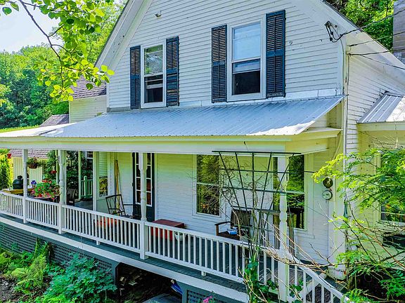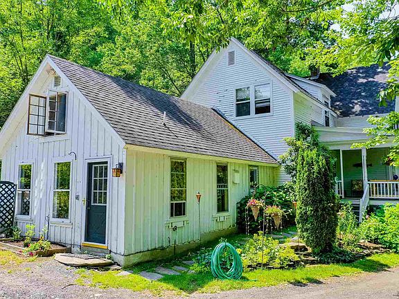 An iconic white farmhouse sitting above the clear and beautiful Dog River, what could be better? This lovely home has all its original historic charm with gleaming hardwood and softwood floors, solid wood doors, hand turned newel post and banister, etc., yet the kitchen has recently been completely renovated with gorgeous white custom cabinets, soapstone counter tops and marble tile backsplash. A perfect mudroom was also created right by the kitchen entry with built in bench and shelves and ceramic tile floor. The kitchen is open to the main living area which has floor to ceiling windows at one end, allowing the sun to stream into the rooms. A lovely formal dining room, a full bath and a laundry room are also on the first floor. Upstairs are four generously sized bedrooms and a tiled full bath. A very attractive attached one bedroom apt is great for guests or in home office space or to use as a rental. The big covered porch allows for sitting and dining area and it faces the lovely gardens which run right down to the river. The heated garage has a big room above which is currently being used as a sewing room. Meandering mowed paths are all along the river with many areas for swimming holes. There are tons of raspberry bushes plus room for multiple vegetable gardens. A chicken coop and shed/barn for other farm animals as well is behind the garage. The country life just minutes from Montpelier and I89