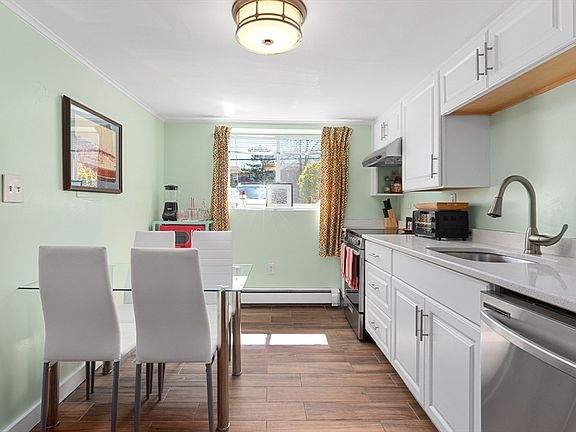 Conveniently located in the heart of Chestnut Hill is a recently renovated 2-bedroom, 1-bathroom condo. This sunny and bright condo features hardwood floors throughout and a window in every room. The condo attributes a new modern, updated eat-in kitchen with white shaker cabinets, stone countertops, and newer stainless-steel appliances. The ample bedrooms are similar in size. The condo has so many closets! Heat, hot water, 1 deeded parking space, snow removal, and grounds are included in the condo fee. The Woodside Condominium Community features an inground pool, tennis courts, barbeque area, visitor parking laundry in building and a playground. This condo is near many options for public transportation, 51 bus and easy highway access. The condo is minutes away from so many local shops, restaurants, outdoor space and VFW Parkway! This is a gem you don’t want to miss!
