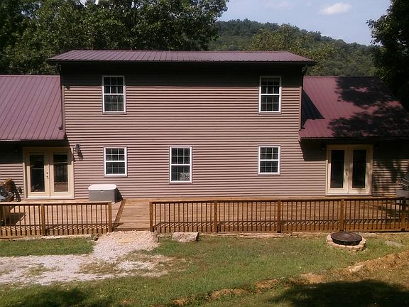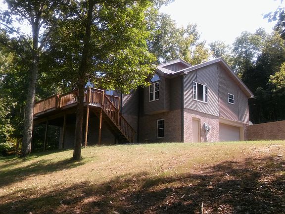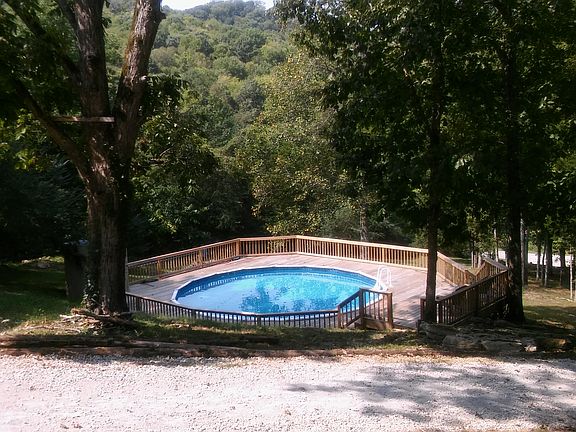 Beautiful lakeside home with 5 rolling acres with panoramic view of hillside in Defeated Creek area. Boat ramp 2/10 miles from home. Home is a 1-1/2 story with a full basement. Open floor plan with beautiful wood railing upstairs. Beautiful wood laminate flooring throughout main living areas and downstairs bedrooms. House is plumbed for 3 bedrooms. House has additional flex room/office on main floor. Huge walk-out unfinished basement with plenty of room for storage. Stainless steel appliances in kitchen and huge garden tub in Master bath. Very large master bedroom with views of hillside from front, side, and rear with double French doors leading to outside deck. Full deck on back of house as well as front of home. Pool with extensive decking built around above ground 27' x 4' round pool. Pool has storage facility on decking as well. Beautiful hardwoods and evergreens surround property.
