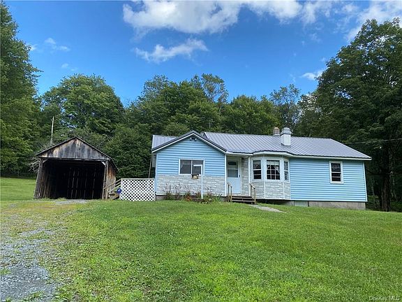 Well-loved sky blue home owned by one family from the day it was built. Located on a beautiful quiet road in Roscoe, NY, this delightful 3 bedroom cottage is 2.5 miles to town... just far enough away to enjoy the sounds of New York's native birds. On the back of the property, sits a large clean workshop filled with tools, ready and waiting for all of your exciting, creative projects. Large flat areas on the lawn are calling for a great spring vegetable garden. The fireplace inside awaits you on cold Catskill nights. Only 7 minutes to Downtown Livingston Manor! Schedule a viewing to find out if its right for you and yours in Trout Town USA!! Home is being sold AS IS.