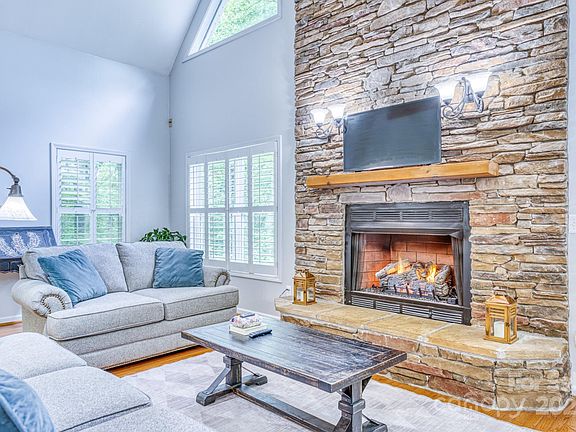 Nestled in a tranquil wooded setting spanning over 1 acre, this property offers the allure of seclusion while being mere minutes from both Black Mountain to the east and Asheville to the west. A serene creek meanders along the back of the yard, complemented by a cozy fire pit in the fenced backyard, ideal for gatherings under the stars. For furry companions, a charming doggie "duplex" stands ready, or it could easily be repurposed into a coup for other animals. Beautiful landscaping surrounds the home, which features 2 bedrooms and 2.5 bathrooms on the main and upper levels, along with a separate 1-bedroom, 1-bathroom daylight basement apartment complete with a full kitchen and living room and interior and exterior access. Inside, two inviting fireplaces await, while fresh interior paint enhances the bright and welcoming atmosphere. Whether seeking solitude or entertaining guests, this property offers the perfect blend of natural beauty and convenient access to nearby amenities.