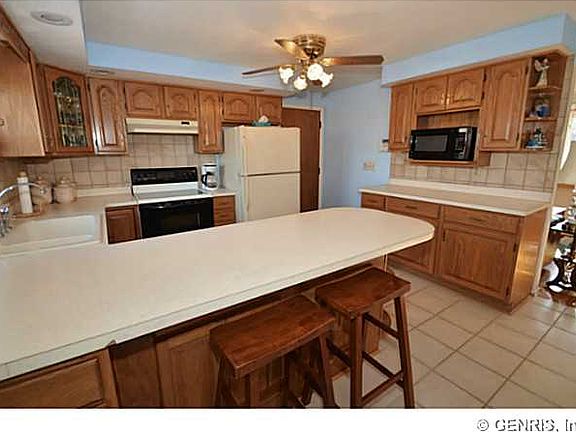 Quality home through and through! This south facing, light and bright home offers hardwood floors, a BIG updated oak eat-in kitchen w/breakfast bar, ceramic floors & french sliders to the deck! Enjoy the bay window liv rm and spread out in the BIG fireplaced fam rm w/woodstove insert! Plus updated baths including a jacuzzi main bath, vinyl windows, vinyl siding and architectural roof! The furnace/AC was updated in '10, there's an awesome brick paver patio out front & 2 story deck outback w/a fenced yard & shed to boot!