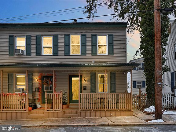 This great starter home features 2 bedrooms and 1 bathroom, with lovely water views of the Pine Grove Canal right from the front porch. Inside, you’ll enjoy a bright, neutral color scheme throughout, including a cozy living room with an electric fireplace. The spacious dining room leads into a kitchen with updated cabinetry and plenty of counter space, plus a window that overlooks the fenced-in yard and deck. The pellet stove adds a beautiful ambiance and warmth to the home. With first-floor laundry and large bedrooms, this home offers plenty of practical space. The full bathroom includes a charming clawfoot tub, shower, and an updated vanity. The third floor offers flexible space that could serve as a third bedroom, office, or additional storage. Step outside to a 15x12 deck, a fenced-in yard, and a small one-car garage (or large shed), plus off-street parking. Conveniently located near the town pool, shops, and eateries. This home is a ready for you to make it your own. Call today to set up your private showing!